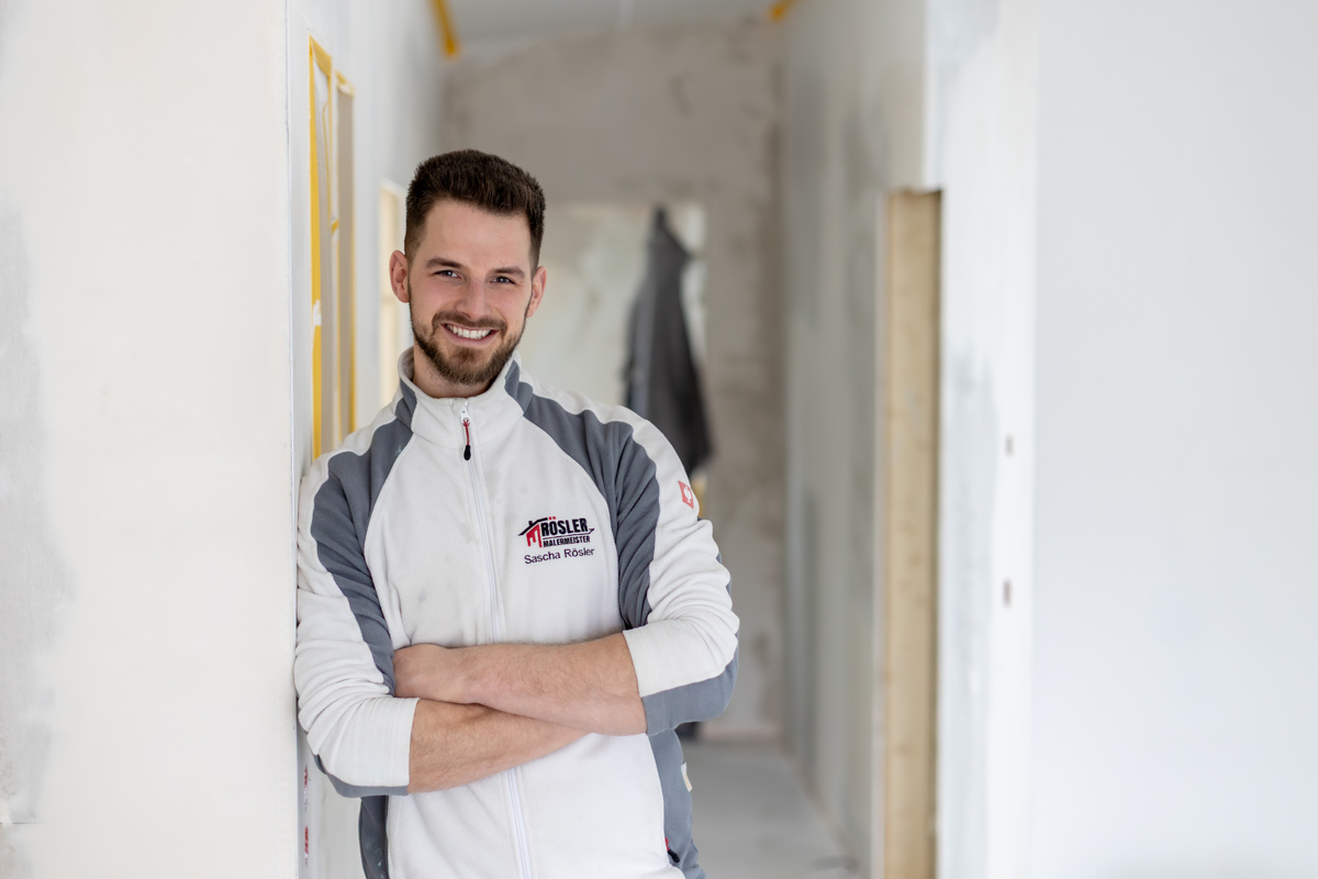 Ich bin Sascha Rösler, Malermeister aus Überzeugung und mit Leidenschaft für Qualität. Seit über 14 Jahren arbeite ich im Maler- und Lackiererhandwerk. Seit 2023 selbstständig,